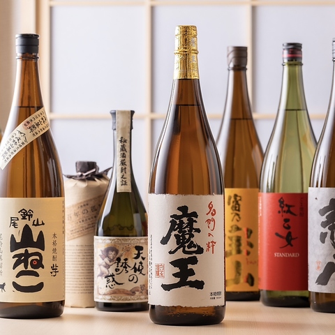 日本各地から集めた焼酎(麦・芋・米・胡麻など)を取り揃えております。それぞれおすすめの飲み方がございますので、是非お試しください。