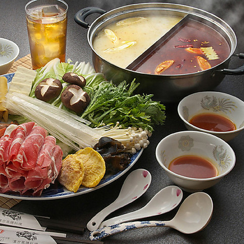 十数種類の漢方食材を配合したスープに、絶品ラム肉・海鮮・季節野菜などが贅沢に入った、体にやさしくヘルシーな本場中国の「本格火鍋」をお楽しみ頂けます!今ならクーポンご利用で4950円でお楽しみいただけます♪寒い季節に心温まる火鍋をご堪能ください!【忘年会や新年会に...】