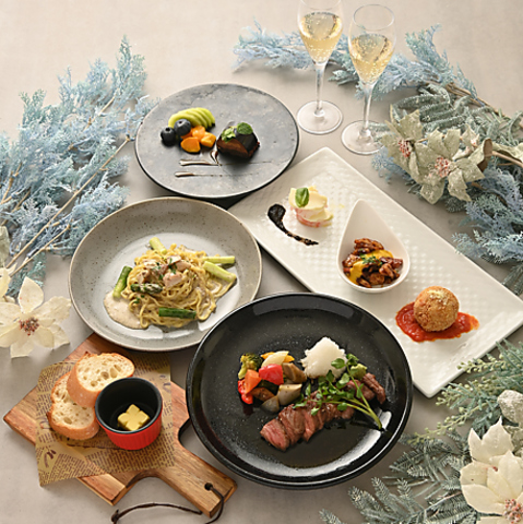 一部17時~、二部19時半~の特別時間で、デートや女子会にぴったり。ワンちゃんと楽しめるコースもご用意♪ 味はもちろん、見た目も華やかで写真映え抜群!心躍るクリスマスを、特別な料理とともに。デートはもちろん、女子会やご家族と一緒にお楽しみください。