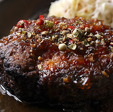黒毛和牛と新鮮な国産豚の合い挽き肉を使用し、旨味を凝縮させた自家製ハンバーグ。炭焼きでじっくりと焼き上げ、香ばしさをプラス!甘じょっぱい特製ソースが見事に調和した極上の食感は、居心地の良いおしゃれ空間で老若男女問わず楽しめる逸品です。