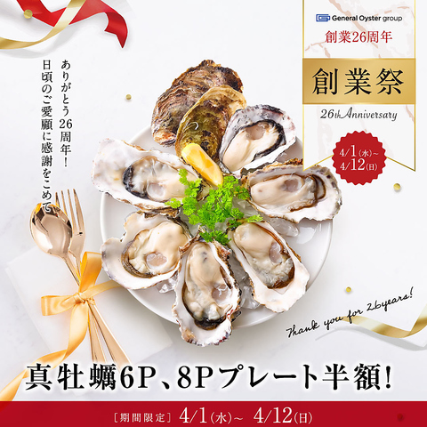 4/1~4/12。おかげさまで26周年!日頃の感謝の気持ちを込めて真牡蠣プレート半額企画を開催いたします!