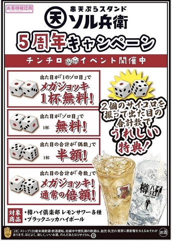 串天ぷらスタンド ソル兵衛 別院通り店(金沢駅前) ドリンクのこだわり