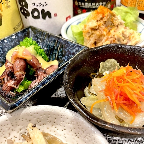週替わりで作る美味しいおばんざいは仕入れから店主が全て行なっております◎まずはお通しがわりとしてめしあがってください!