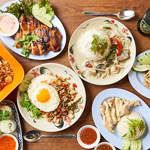 ブランド【大山鶏】の食べ応え満足の鶏肉をRUFUSオリジナルソース(醤油&味噌ベース2種類)に付け、鶏の出汁、ショウガ、ニンニクと一緒に炊いた食欲をそそる良い匂いのタイ米高級香り米のジャスミンライスでいただくRUFUS特製カオマンガイは開店17年目の今も大大人気メニューです!!♪鶏お出汁のスープ付き♪