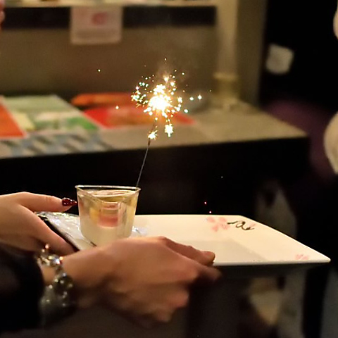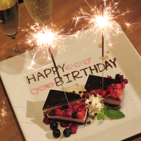 メッセージ&花火付きデザートプレートで、大切な人にサプライズ♪日頃の感謝とお祝いを伝えるお手伝いをいたします!メッセージ内容やお出しするタイミングはお気軽にご相談くさだい!