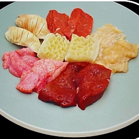 豊富な種類のホルモンを一度に楽しめるお得な食べ比べセット♪その日のおすすめのホルモンを使用しており、各部位の特徴が際立ちます。炭火で丁寧に焼き上げることで、旨味が引き立ち、香ばしい香りが食欲をそそること間違いなし!ホルモン好きにはたまらない一皿をぜひご賞味ください!