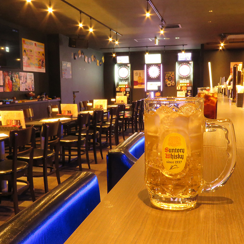 広々とした落ち着いた店内にはダーツ台6台、カラオケがあり食べて飲んで遊べる空間です。