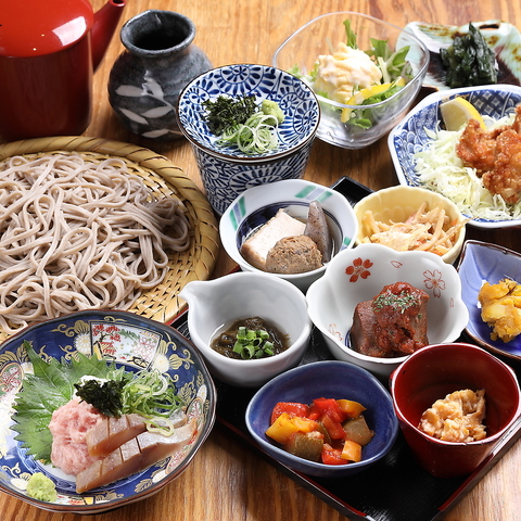 山梨県産の美桜鶏を使用し柔らかくジューシーに仕上げた長野県のソウルフード「山賊焼き」・ボリューム満点「信州名物 ソースかつ」など、信州甲州の郷土料理を中心としたお料理をご用意しております。〆には、八ヶ岳山麓産のそば粉を使用した風味豊かな「信州そば」や、山賊焼きが乗ったボリューミーな「山賊そば」がおすすめ◎ご賞味下さい!