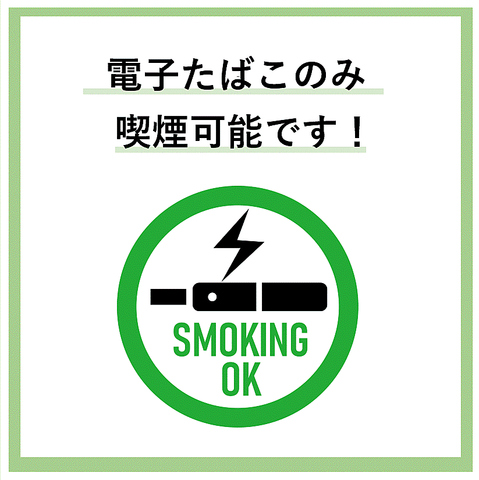 電子タバコのみ喫煙いただけます。ゆっくりとお食事お楽しみください!