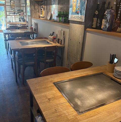 カウンター席は全卓鉄板完備しております。お一人様でもお気軽にご利用いただけるお店です。お仕事帰りや、ご友人同士でのお食事にも最適です。お気軽にご来店ください♪