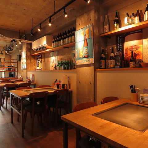 カウンター席だけでなく全テーブル席に鉄板完備!アツアツの料理をキンキンに冷えたお酒と♪