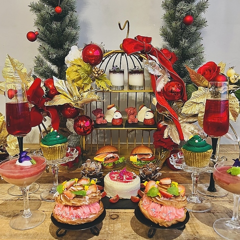 仲間同士でワイワイ楽しむもよし、女子会っぽく華やかにまとめるもよし、写真を撮りたくなるような、映えが詰まった空間で、非日常な雰囲気が特別な時間を演出してくれます。今年のごほうびに。来年もよろしくの乾杯に。(飲み放題付)