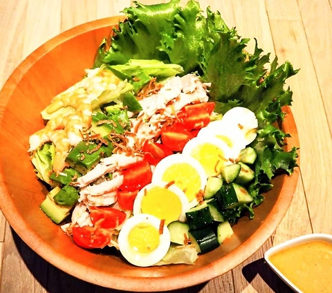 ボリューム満点!!たっぷりと様々な具材の入った大満足サラダ!!ドレッシングはもちろん、コブドレッシングで★お立ち寄りの際は是非一度お召し上がりください◎