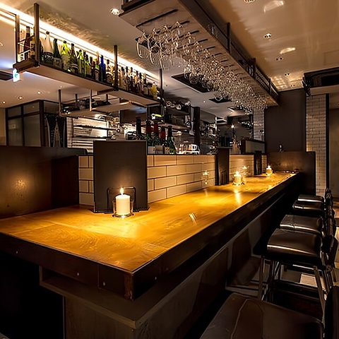 店内の照明は、まるで夕焼け空のような温かい光で包み込みます。日が暮れると、シックなインテリアが際立ち、大人の隠れ家のような雰囲気に。カウンター席で、窓の外を眺めながら、ゆったりとした時間をお過ごしください。