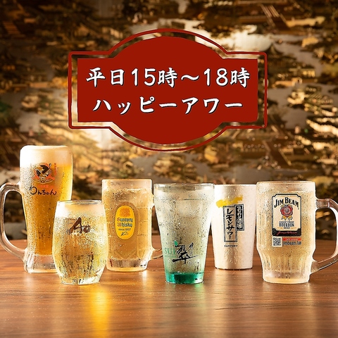 【平日限定】15時~18時ハッピーアワー♪生ビール・ハイボール・レモンサワー・紹興酒を329円でご提供!!