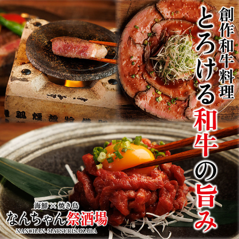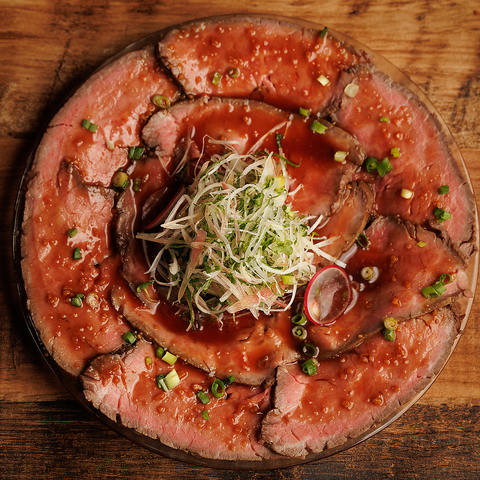 とろける味わいの和牛ユッケやローストビーフ、石焼ステーキなど和牛の旨みを堪能できるメニューをご用意♪
