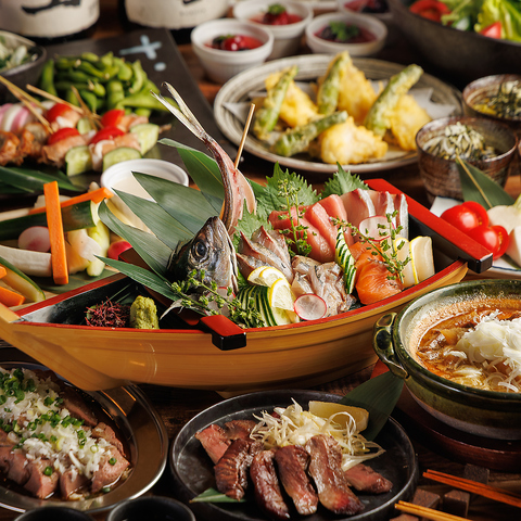 日本各地から届く四季折々の旬の食材をふんだんに使ったお料理をご用意◎その時期最も美味しい海の幸や山の幸を、職人が腕によりをかけて調理いたします。鮮度抜群のお造りはもちろん、香ばしい焼き物やサクッと揚げた天ぷらなど、こだわりの日本酒や焼酎との相性も格別♪ご予算に合わせたコースのご提案も可能ですのでお気軽にご相談ください♪