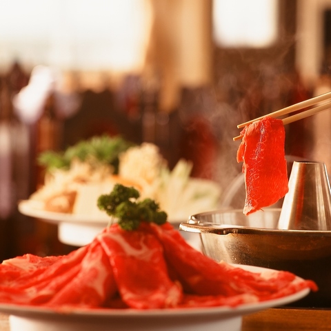 肉質にこだわり味も値段も間違いなしのしゃぶしゃぶ&すき焼き食べ飲み放題は税込6050円にてご提供!
