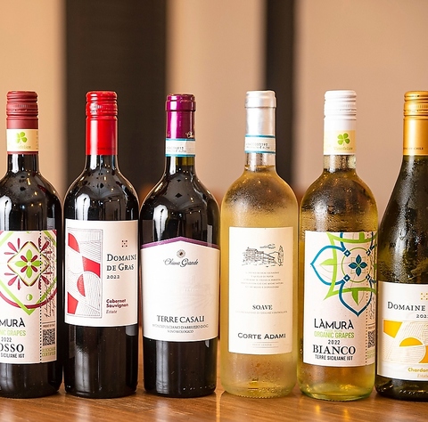 選りすぐりのビオワインは飲みやすく次の日に残らないと評判です!お好みに合わせて赤白を各3種と季節限定のワインもご用意してる事もございます。
