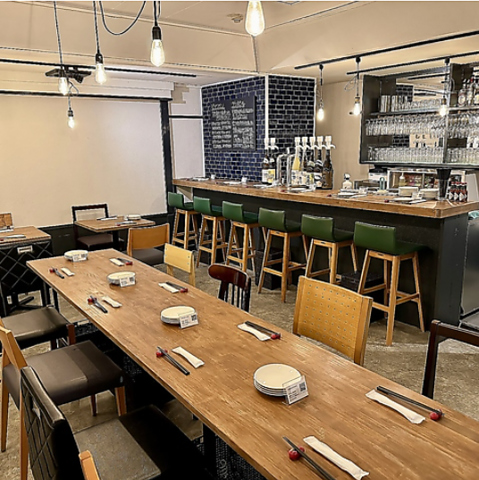 【テーブル席でゆっくりと】10名様まで座れる長テーブルから2名様用のテーブルまでご用意しております。又、カウンターで並んだお酒を見ながらバー感覚でも楽しめます♪