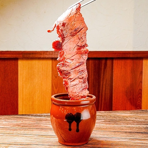 特別なお肉を味わいたいなら、お店の名物、『壺ミックス』がおすすめです!手切りにこだわる肉は下処理からお肉一枚一枚丁寧に機械を使わずに手作業で仕上げ、特製タレでじっくり漬け込んでいます。肉問屋直送の希少部位の大判サイズのカルビとハラミは、食べ応え十分☆幅広い世代に愛される一品です。ぜひ、ご賞味ください!