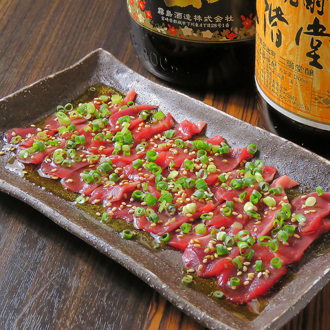 引き締まった肉質と噛むと溢れる旨味が特徴です。炭の香りがより食欲をそそります。お酒との相性が抜群!創る屋の人気メニューのひとつです。柚子胡椒と一緒にお召し上がりください。
