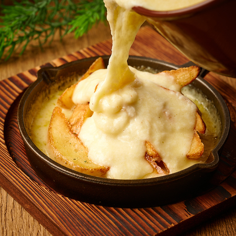 アツアツに溶かしたラクレットチーズを、お好みの食材にたっぷりとかけて楽しむ贅沢一品!濃厚なコクとクリーミーな味わいが、野菜やお肉のしっかり絡み、旨みを引き立ててくれます!お客様の目の前でとろけるチーズをたっぷり掛ける演出はライブ感があり、SNS映えも抜群!熱々チーズを存分に味わえる当店のオススメです♪