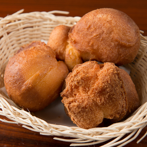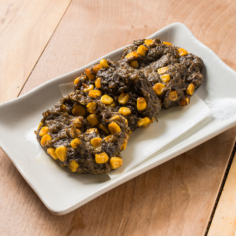 外はカリッと中はふんわりした食感が堪らない!当店人気の『もずく天ぷら』。沖縄塩またはウスターソースでお召し上がりください♪