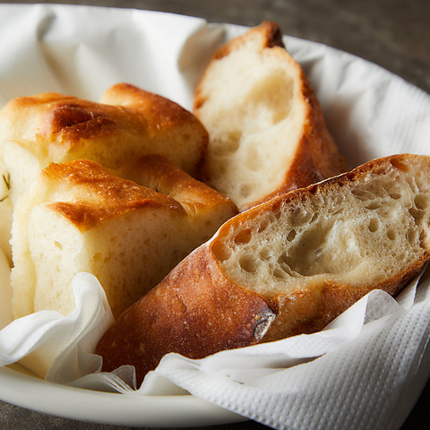 恵比寿ガーデンプレイスにある「俺のBakery」製のパンが食べ放題!ディナー帯はアミューズ(税込550円)としてパンが食べ放題になる!!さらに飲み放題付きコースでもパン食べ放題OK♪香りと風味豊かな美味しいパンは全二種類。オプションでバターやオリーブオイルをつければ際限なく食べられるほど美味です♪