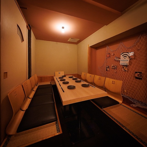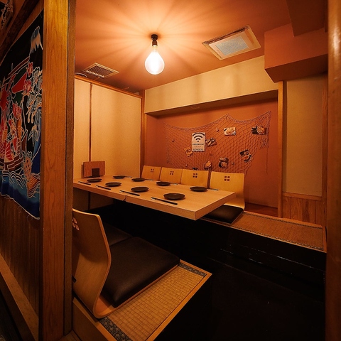 6~8名様用個室中規模の飲み会や接待にぴったりの個室席。掘りごたつやテーブル席など用途に応じてご利用可能。程よい広さで会話も弾み、食事とお酒を心ゆくまで堪能できます。