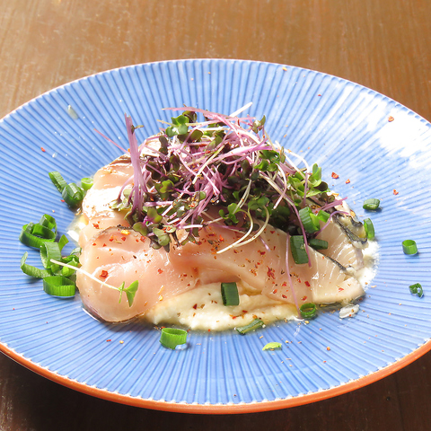 春の食材「鰆(さわら)」を楽しむカルパッチョをご提供♪鰆の旨味とおとうふバターのコクがマッチする楽しい一品!ぜひご賞味ください♪
