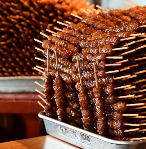 とりかわを串にぐるぐると巻き付け、何度も焼くことで、外はカリッと香ばしく、中はもちっとジューシーな味わいに。 1本食べると、もう1本…と食べる手が止まらない美味しさです。 6日間かけてじっくり仕上げる、本物のかわ焼きをぜひご賞味ください。