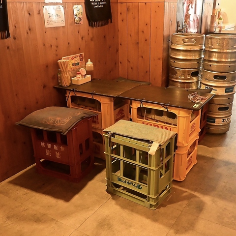 実は人気の瓶ビールのケース席!レトロな店内の雰囲気をじっくりと味わい下さい◎