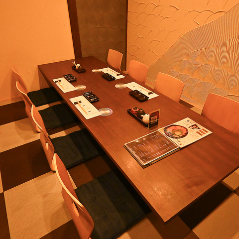 全席個室になっており、周囲を気にせずに楽しめるプライベート感満載の設計です。テーブル席と掘りごたつ席があり、ニーズに合わせてお選びいただけます。隠れ家のような大人の空間で、特別な時間をお過ごしいただけます。思い出に残る素敵なひと時をお過ごしいただけます。
