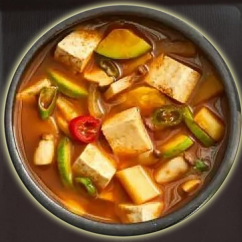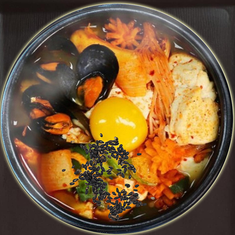 スープを用いる水冷麺に対し豆乳ベースなのが特徴。良く冷やしての提供なので火照った身体を冷ましたいときにバッチリです。オリジナル出汁と熟成キムチが相まって美味しい料理をご堪能ください。タマゴを除くことでビーガンさんにも対応可能です。キムチなし辛さ無しのご提供も可能です。3点ナムル付き