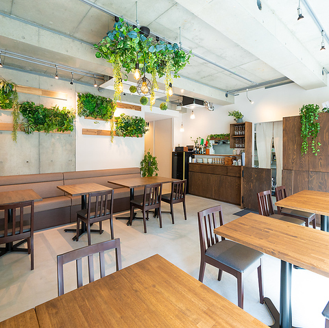 『GRECIAL』は、「green」と「special」を掛け合わせた言葉です。木々を多く使い、自然をイメージした店舗デザイン。加えて、こだわりの無農薬野菜などと言った「green」。それらを通して、お客様に特別で非日常的な「special」な時間や空間をお届けしたいという想いが、『GRECIAL』という名前に込められています。