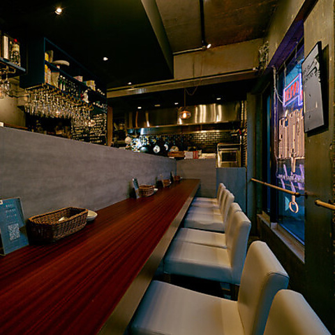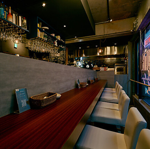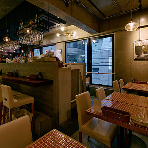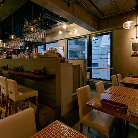 【隠れ家空間×絶品創作洋食】存在感あるカウンターとタイルのテーブルがスタイリッシュな店内です。洗練された雰囲気に思わず胸が高鳴る特別な空間。大切な方とのデートや記念日、誕生日、気の合うご友人との食事や女子会・ママ会など様々なシーンで利用可能!当店自慢の創作料理と会話を楽しみながら、ゆっくりとした時間をお過ごしください。