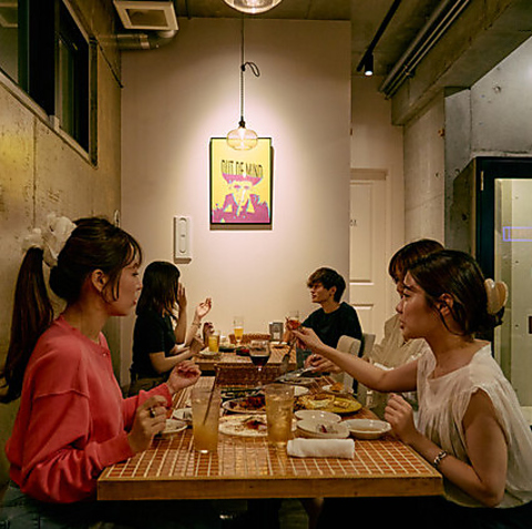 【利用人数に応じてカスタマイズOK】2人がけや4人がけのテーブル席をご用意しております。お洒落で落ち着く雰囲気のテーブル席は、女子会やご友人同士の集まりなどに最適です。また、利用人数に応じて座席のカスタマイズが可能♪最大12名様までご利用可能のため、打ち上げや会社宴会など中規模の集まりにもご利用いただけるのが嬉しいポイント。