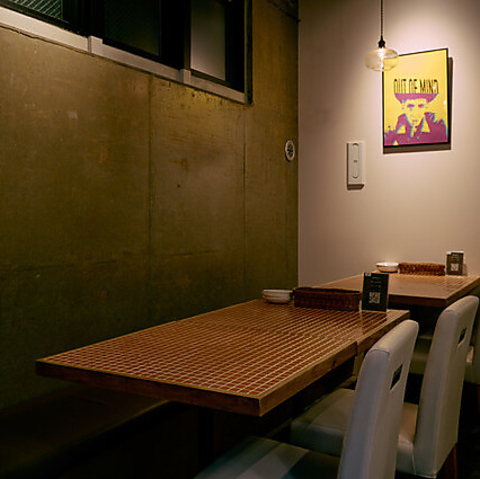 【様々なお座席をご用意◎】2人がけ、4人がけのテーブル席をご用意しております。オレンジのタイルが印象的なお洒落なテーブルは、女子会やご友人同士の集まりなどに最適!また、連結させると最大12名様までご利用可能のため、打ち上げや会社の宴会等の集まりにもご利用いただけます◎様々なシーン・ニーズに対応可能です!