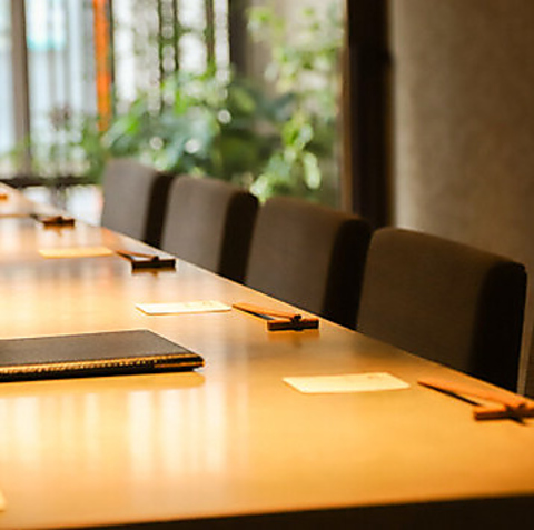 木の温かみが溢れるカウンター席は心が落ち着ける空間です。安心感を醸し出す温もりの中、一人でゆっくりと過ごすもよし大切な方とのデートに利用するもよし、どんなシーンにも最適です。落ち着いた雰囲気の中で、お料理や飲み物を楽しみながら、心地よいひとときを存分にお過ごしください。