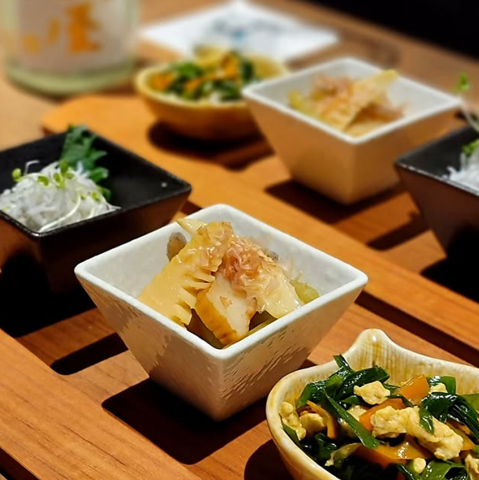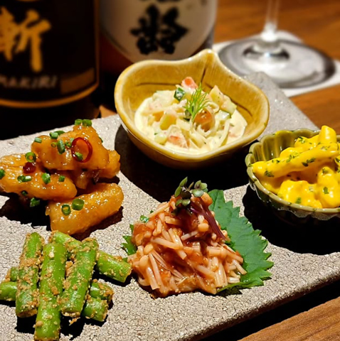 当店では日本酒に合う逸品を創作料理を幅広く取り揃えております。お料理に合うおつまみもご提案させて頂きます。お好みのお造りやお刺身盛り合わせ、お料理などお食事をお楽しみください。