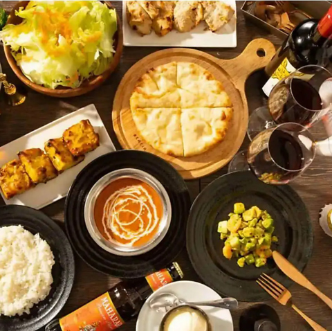 インド直輸入のスパイスを使った本格インド料理が楽しめるお店。タンドリーチキンやお酒に合うタパス、飲み放題付きコースも充実!女子会や宴会、接待など幅広いシーンに対応◎ナン&ライス食べ放題のランチも人気です。開放感のあるテラス席での一杯もおすすめ♪