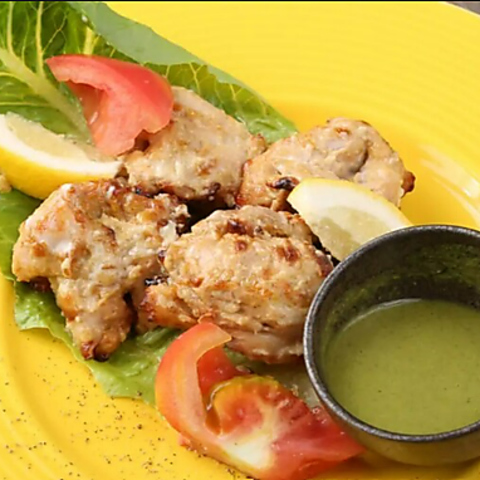 ヨーグルトとクリーム、スパイスでマリネした鶏肉をタンドール窯でふっくらと焼き上げた一品。やさしい味わいとジューシーな食感が特徴で、辛さ控えめの人気メニューです。
