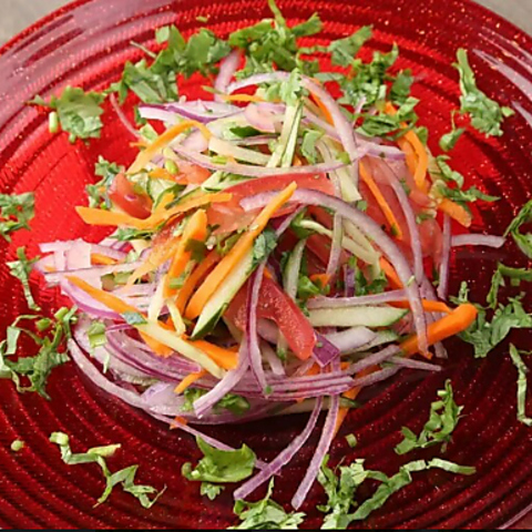 刻んだ玉ねぎやトマト、きゅうりをレモン果汁とスパイスで和えた、インドの定番サラダ。さっぱりとした酸味とシャキシャキ食感が、カレーやスパイシー料理と相性抜群です。