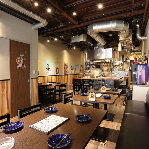 【アットホームな店内はデート・宴会・おひとり人様も大歓迎!】解放感あるオープンキッチンの店内。明るく活気がありアットホームな空間です。目の前で調理をするお洒落なカウンター席はデートにも最適。肩を並べてゆったりとお過ごしいただけます。
