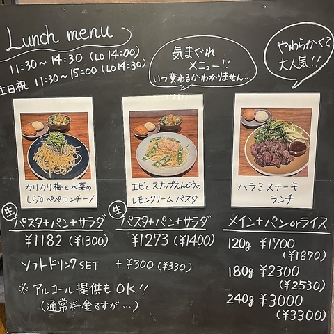 旬の野菜を使用した生パスタは絶品★ハラミステーキはやわらかくて大人気!友人や同僚と是非ご利用下さい♪