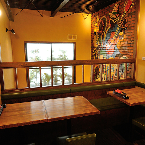 吹き抜けになっているため開放感のある店内。リラックスできる印象のテーブル席は幅広いシーンにマッチします◎レゲエミュージックの世界観が表現されたウォールアートが、独特の雰囲気を醸し出しています♪