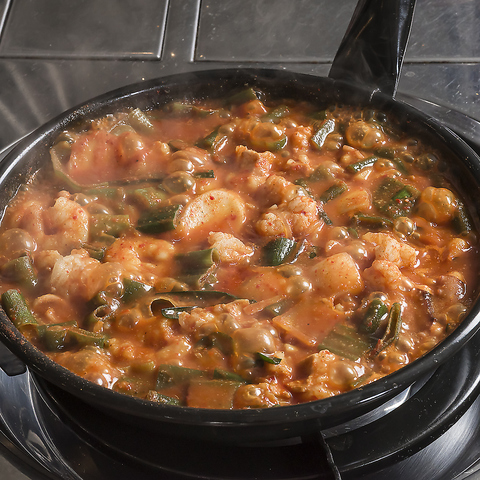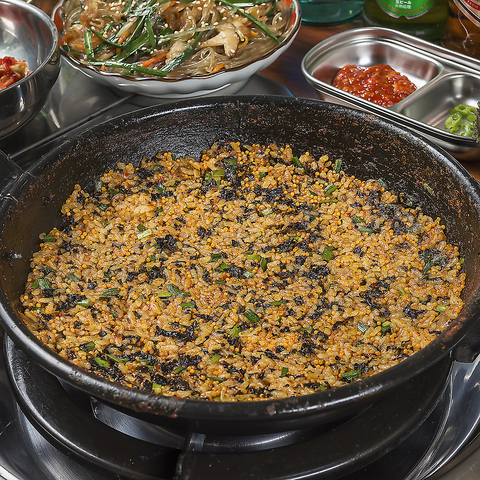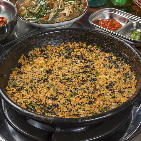当店ナッコプセの〆はポックンパブ(韓国風焼飯)をおすすめしております♪残ったスープにご飯+とびこ+韓国海苔をいれて食べるポックンパブは絶品で多くのお客様からご好評をいただいております!