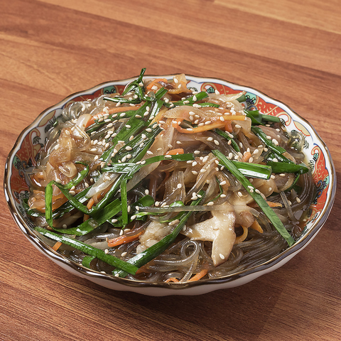 春雨をたっぷり使い、野菜を香ばしく炒めあわせた韓国の代表的な家庭料理。ごま油の香りと、コクがありほんのり甘い特製タレをしっかり絡ませ、優しい味わいに仕上げました。