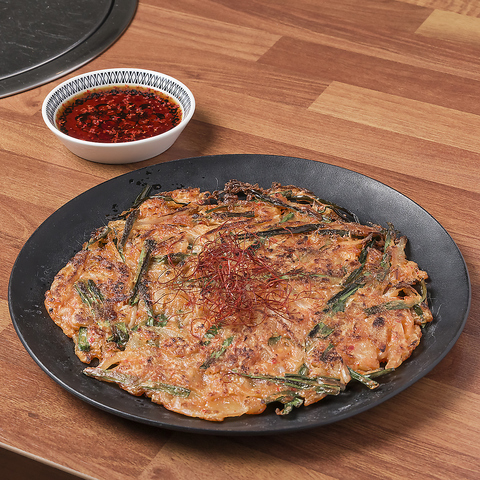 発酵したキムチの酸味と、かりっと焼き上げた生地を香ばしく召し上がっていただける人気の1枚です。チーズ追加300円